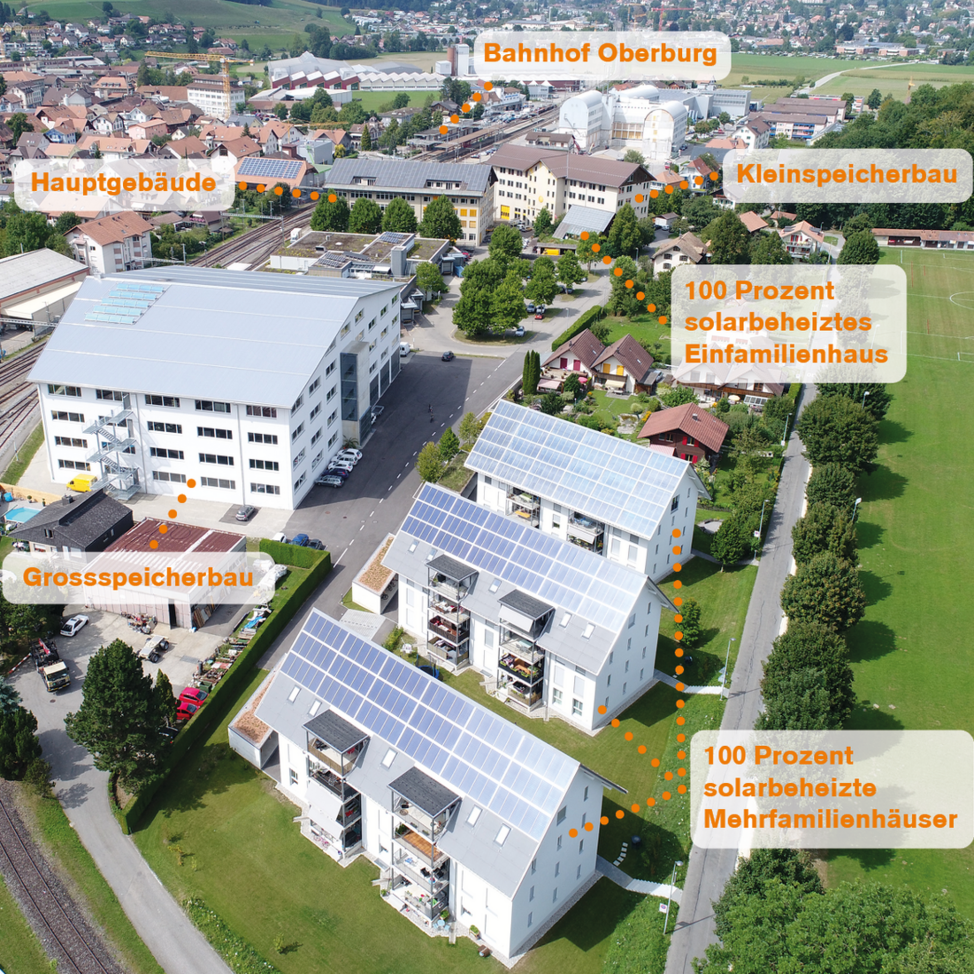 Die Jenni Liegenschaften AG dient als Investor für die Fabrikationsgebäude der Jenni-Energietechnik. Mit dieser Investition fördert sie die Herstellung des Energiespeichers Swiss-Solartank®, den wir als Kernstück für die Energiewende sehen. Zudem zeigt die Jenni Liegenschaften mit den nahezu vollständig solarbeheizten Mehrfamilienhäusern auf, dass es möglich ist, neue Gebäude ganzjährlich mit Sonnenenergie zu heizen.