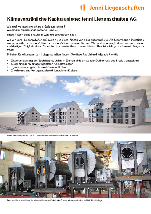 Mit der Beteiligung an Jenni Liegenschaften AG investieren Sie in Immobilien und feste Produktionsanlagen für Jenni Energietechnik AG.
