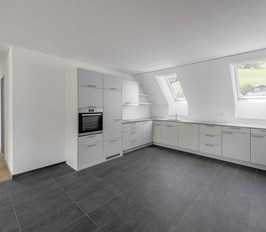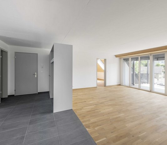 Die lichtdurchfluteten Räume und der durchdachte Grundriss schaffen ein offenes, wohnliches Ambiente. Elektrische Dachfenster bringen zusätzliches Tageslicht in Küche und Bad, während die bodentiefe Fensterfront im Wohnraum ein grosszügiges Raumgefühl erzeugt. Die individuell regulierbare Bodenheizung in jedem Zimmer sorgt für höchsten Wohnkomfort.