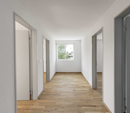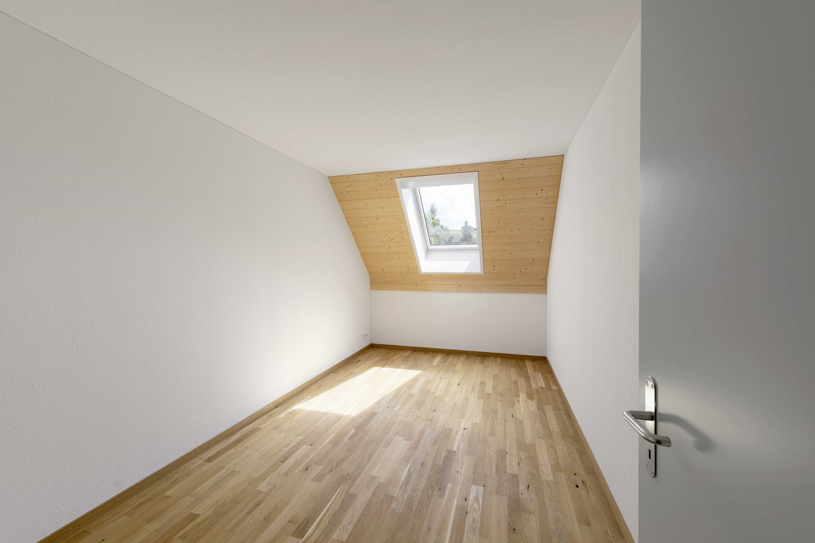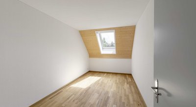 Die vier separaten Zimmer lassen sich flexibel nutzen – ob als Schlafzimmer, Kinderzimmer, Büro oder Gästezimmer – ganz nach den individuellen Bedürfnissen und Lebenssituationen. Alle Räume sind mit hochwertigem Holzparkett ausgestattet und verfügen über grosse Fenster bzw. elektrische Dachfenster, die für eine helle und angenehme Wohnatmosphäre sorgen.