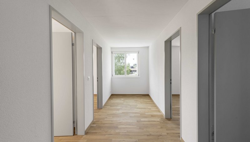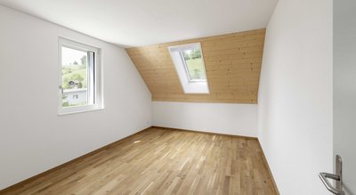 Die vier separaten Zimmer lassen sich flexibel nutzen – ob als Schlafzimmer, Kinderzimmer, Büro oder Gästezimmer – ganz nach den individuellen Bedürfnissen und Lebenssituationen. Alle Räume sind mit hochwertigem Holzparkett ausgestattet und verfügen über grosse Fenster bzw. elektrische Dachfenster, die für eine helle und angenehme Wohnatmosphäre sorgen.